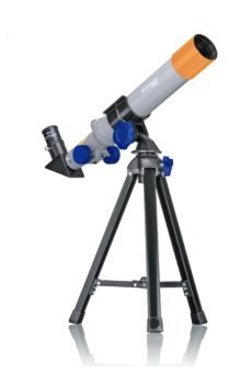 Beskrivning: En kompakt stjärnkikare som bara är 40 cm lång och väger under ett kilo. Denna modell riktar sig till barn (från ca 5 år) och fungerar i grunden precis lika bra i dagsljus för att titta på hjortar eller fåglar, som för att utforska månen under klara kvällar. Den har en inbyggd kompass, en smart hållare för mobiltelefonen och kommer med ett litet bordsstativ. Ett perfekt introduktionsinstrument att ha med i ryggsäcken till sommarstugan!