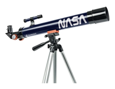 Beskrivning: Ett rymdinspirerat teleskop med officiell NASA-logga som är som klippt och skuret för den unga rymdfantasten (rekommenderas från 8 år). Modellen har en lins på 50 mm och kommer med utbytbara okular för olika förstoringsgrader. Det som får NASA-teleskopet att sticka ut är den illustrerade manualen som medföljer, vilken hjälper barnet att förstå astronomiska principer på ett roligt sätt.